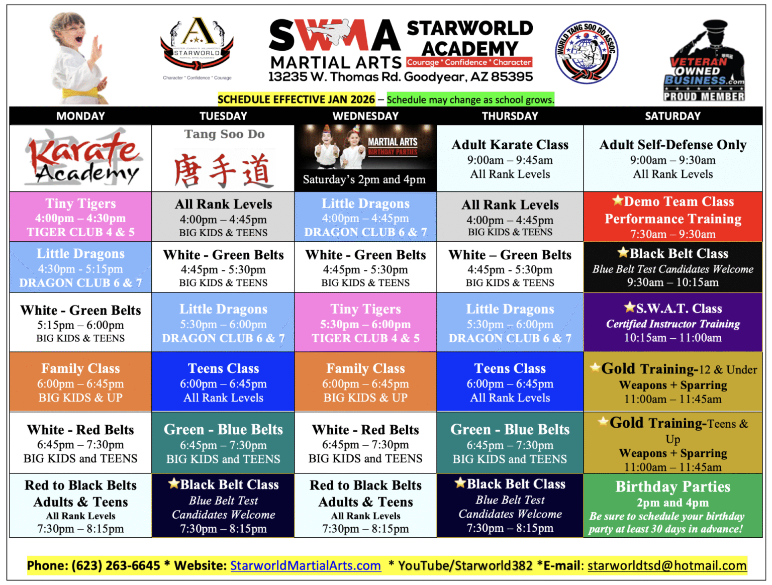 “Our daughter has been a student at Starworld for over 2 years now and we couldn’t be happier with her progress as well as the confidence she has gained from her classes. She is enrolled in the leadership program and we love both the physical benefits of the program as well as the emphasis on respect and personal growth. We highly recommend their classes!”